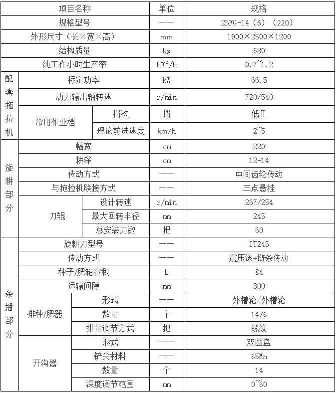 2BGF-14(6)(220)型旋耕施肥撒播機集保護性耕作、植被覆蓋、化肥深施和小麥溝播四大先進技術為一體,是保護性耕作技術理想的配套播種機具。