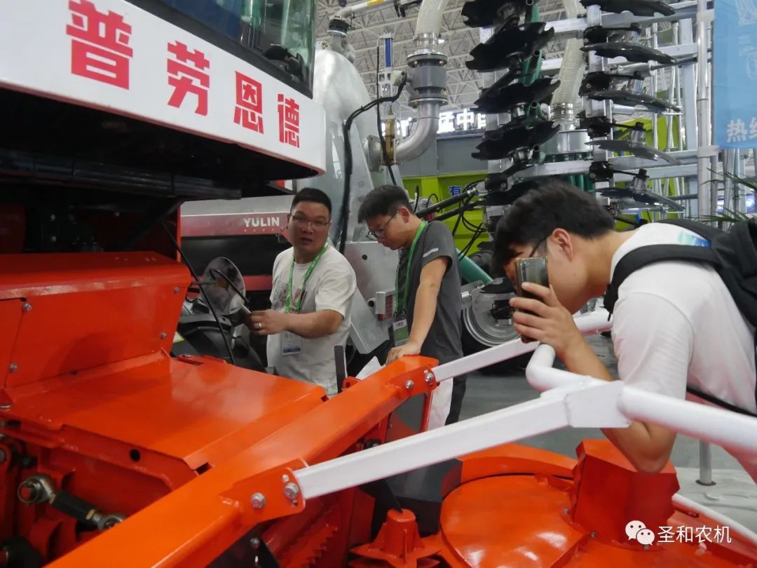 河北圣和農業機械有限公司主營產品包括:青貯機、殘膜回收機、打捆機、旋耕機、秸稈還田機、深松機、驅動耙、水田攪漿機、旋耕播種機、液壓翻轉犁、根莖類藥材收獲機、挖坑機、開溝機等15大板塊、30多個系列、2000多種型號,年生產能力8萬臺套。此次展會,圣和公司攜全新國四版青貯機、深松整地聯合作業機、旋耕機、秸稈切碎還田機等16款新品亮相展會,真可謂“濃縮精華,彰顯經典”。其中,全新國四版青貯機采用自主研發2.65m雙圓盤式割臺,喂入順暢穩定,適應不同行距與高度的作物收獲;飼料切碎均勻,切段整齊,可怠速磨刀,切碎長度四檔可調;超耐磨技術籽粒破碎器,獨特設計齒形,破碎率95%以上;配備上柴310馬力渦輪增壓發動機,動力強勁;采用靜液壓驅動無極變速系統,液壓助力轉向;配置電子自動潤滑系統,針對籽粒破碎等主要機構的軸承進行潤滑;獨特簡便的喂入開關設計,拆卸、檢修方便快捷。