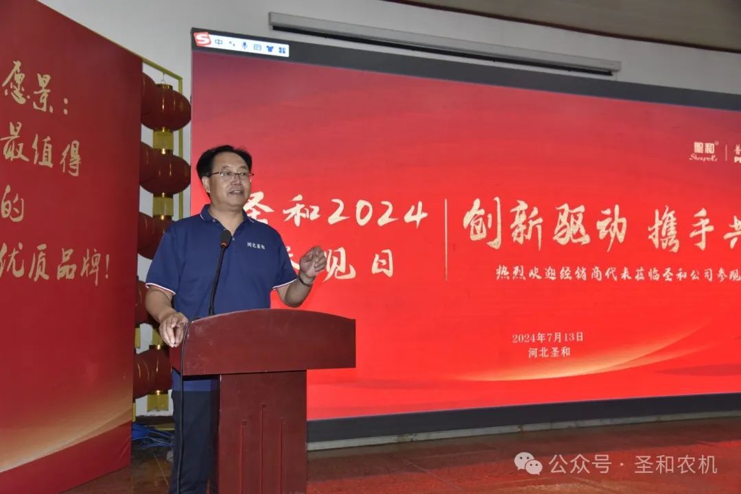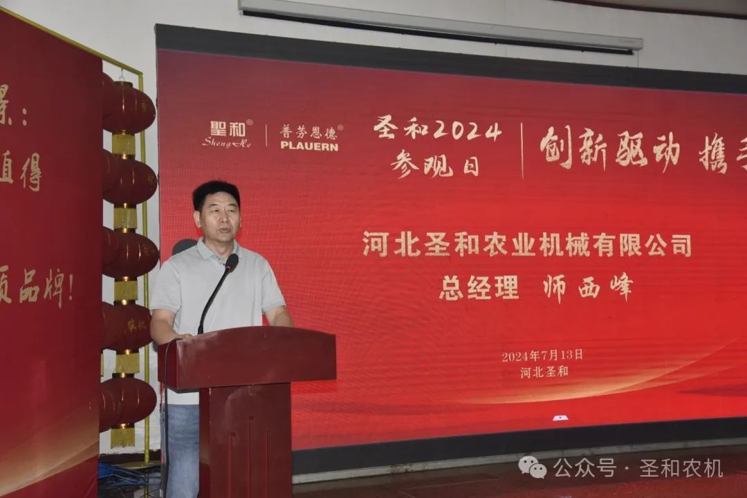 以“創新驅動,攜手共贏”為主題的“2024年公司參觀日”活動在2024年7月11日—13日,連續三天在河北圣和農業機械有限公司盛大舉行。400余位來自南方省份的的經銷商代表分兩期會師圣和,共襄盛舉。圣和公司歡聲笑語,盛事笙歌,一派節日喜慶景象。