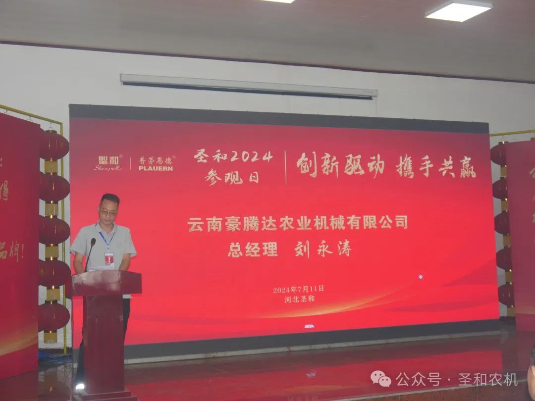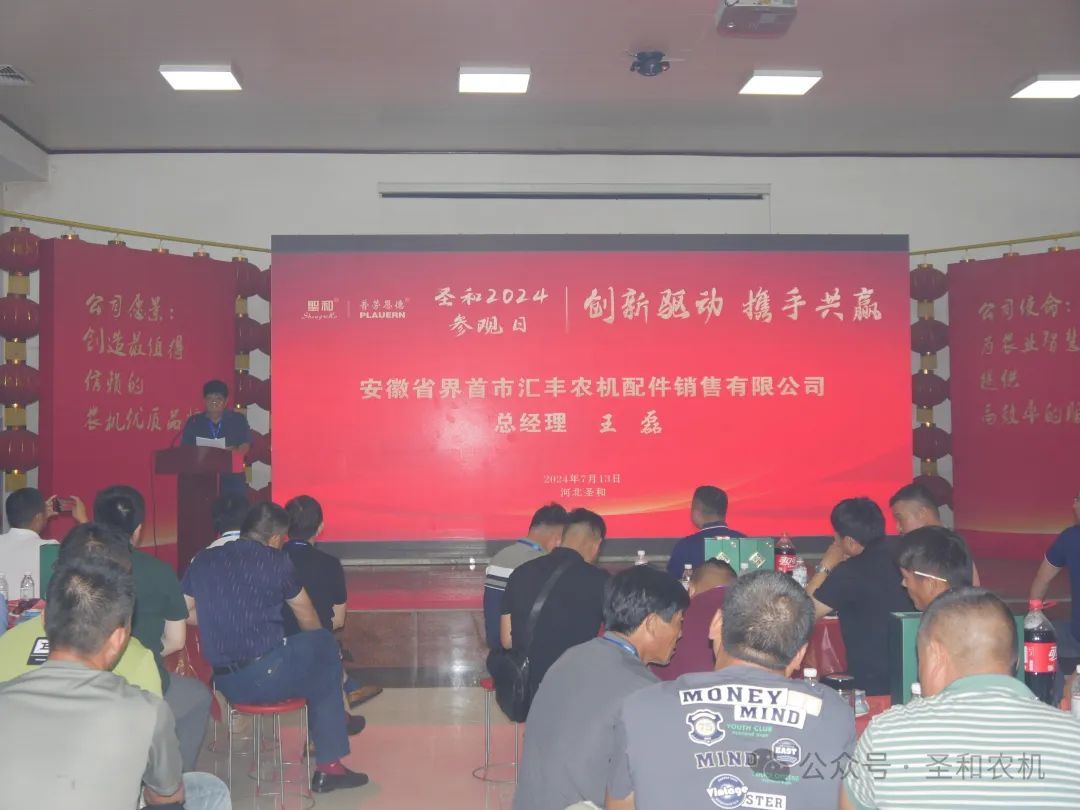 云南豪騰達農業機械有限公司劉永濤總經理;進賢縣昌順農業機械有限公司蔡洪春總經理;合肥旭梓龍機械設備有限公司楊歡總經理;安徽省界首市匯豐農機配件銷售有限公司王磊總經理等分別在不同期次的會議上作為經銷商代表進行了發言。他們對圣和公司所取得的成就表示肯定,并向公司提出了寶貴的意見和建議。