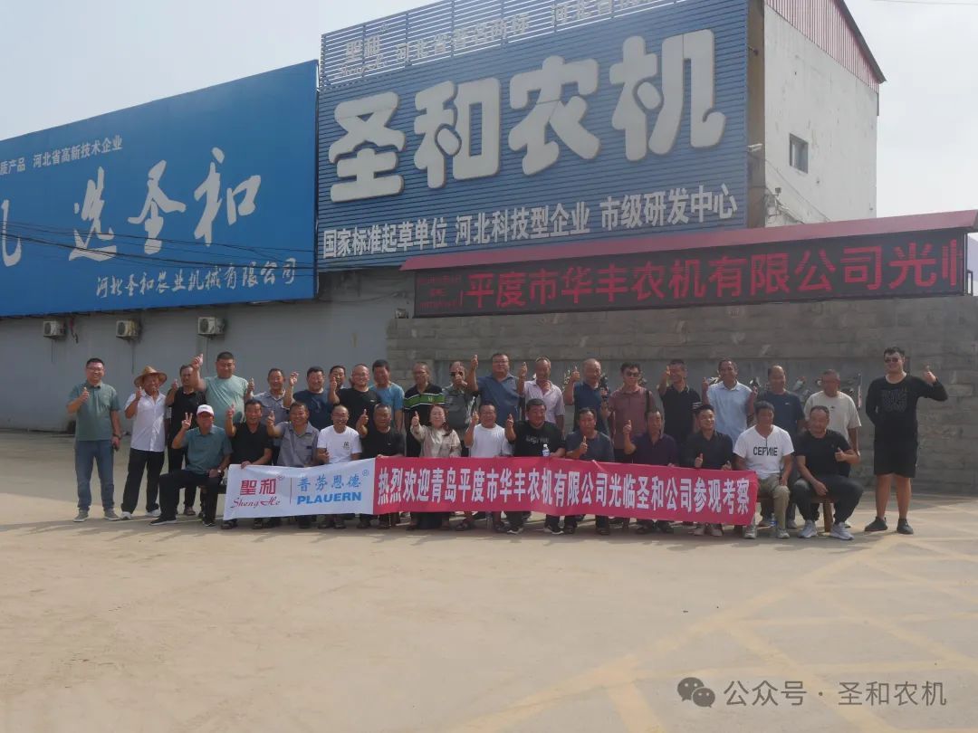 2024年8月14日,平度市農(nóng)機手、合作社代表40余人,在青島平度市華豐農(nóng)機有限公司陳秋里總經(jīng)理的帶領下,到河北圣和農(nóng)業(yè)機械有限公司進行實地參觀考察。圣和公司營銷管理中心總經(jīng)理郭廣彥對參觀團的來訪表示熱烈的歡迎,并熱情接待。