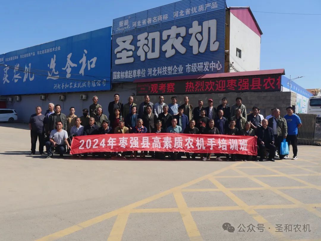 2024年9月22日,棗強縣農(nóng)業(yè)農(nóng)村局2024年棗強縣高素質(zhì)農(nóng)機手培訓(xùn)班到河北圣和農(nóng)業(yè)機械有限公司參觀學(xué)習(xí)。圣和公司董事長王新芳攜公司各級領(lǐng)導(dǎo)熱情接待。