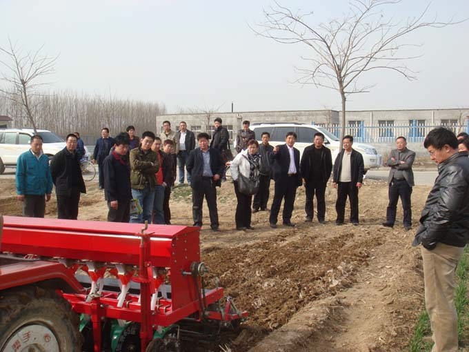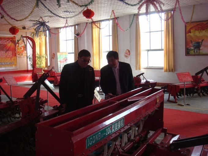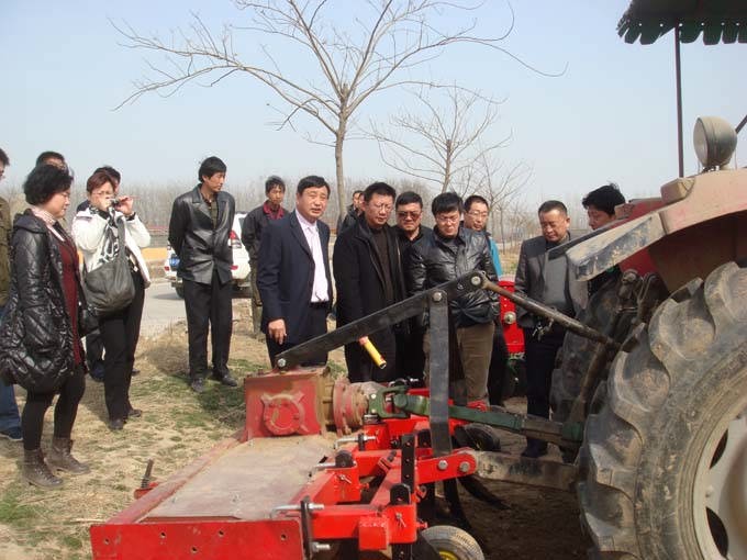 3月23日在河北省農(nóng)機推廣站孫東法站長的陪同下,上海市農(nóng)機推廣總站夏海榮站長、上海市農(nóng)機推廣站甘俊彥科長、王學(xué)云科長一行來我公司參觀深松機項目,隨行來的還有上海各區(qū)縣負責(zé)農(nóng)機推廣的領(lǐng)導(dǎo)。一行人參觀了公司產(chǎn)品展廳后來到公司機具實驗基地,現(xiàn)場觀看了公司深松機、旋播機的演示作業(yè),期間公司王新芳董事長向各位領(lǐng)導(dǎo)詳細講解了深松機的應(yīng)用原理、作業(yè)效果以及適用范圍,各位領(lǐng)導(dǎo)對此次現(xiàn)場演示作業(yè)做出了很高評價,對公司產(chǎn)品也抱有很高期望。