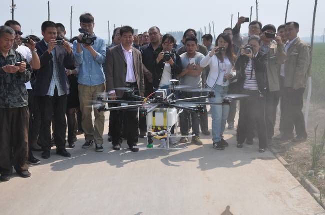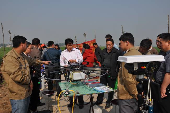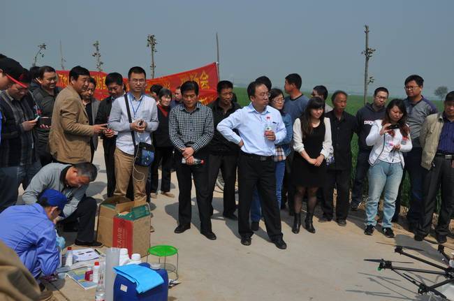 4月29日,我公司與西安鯤化航空科技有限公司聯合研制的“無人植保飛機”與河北威遠生化有限公司達成共識,在藁城展開了一次“無人植保飛機實地藥物防治試驗示范”現場會。到場參觀的有農業局局長趙勝哲、省植保站楊炎杰、市植保站王維蓮、圣和董事長王新芳、威遠生化農藥總經理范朝輝,農業局局長等領導在觀摩機具作業后,給予了高度評價。