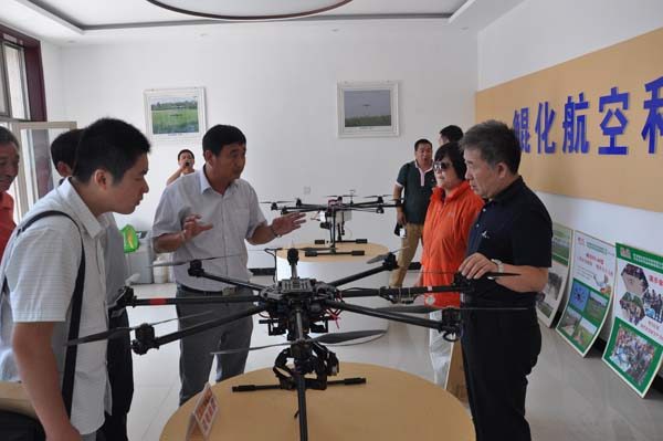 8月14日,在我公司董事長王新芳的陪同下“中國農(nóng)業(yè)機(jī)械化協(xié)會副會長、航空分會會長”楊林、省推廣站站長孫東法、邢臺市農(nóng)機(jī)局領(lǐng)導(dǎo)及我縣主抓農(nóng)業(yè)縣長張鵬等一同參觀了圣和廠部,航空分會會長楊林及各領(lǐng)導(dǎo)對我公司與西安鯤化航空科技有限公司聯(lián)合研制的“KH-86無人植保飛機(jī)”給予了充分的肯定;并提倡科技創(chuàng)新,農(nóng)業(yè)現(xiàn)代化的轉(zhuǎn)型。