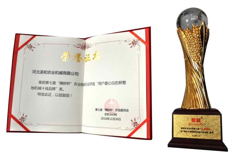 圣和農機榮獲“第七屆精耕杯-用戶最心儀的耕整