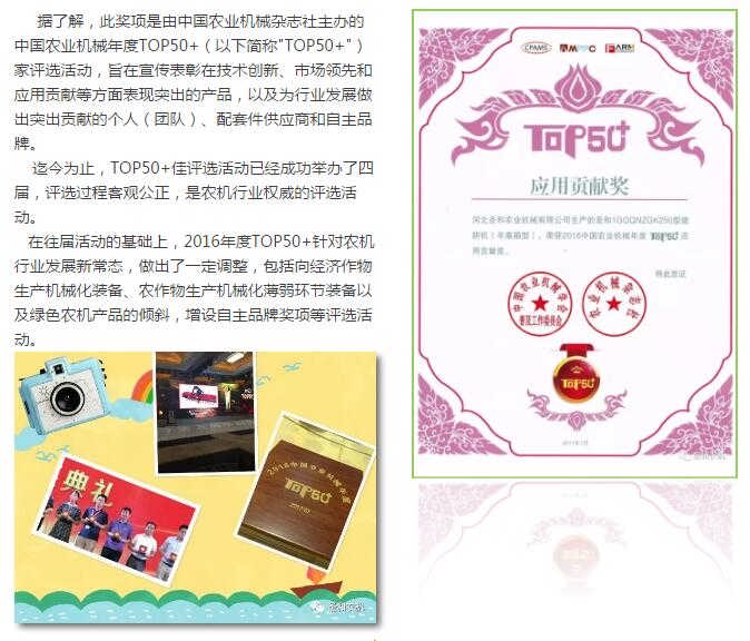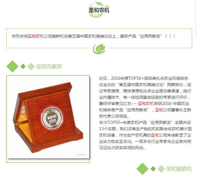 熱烈慶祝圣和農機喜獲--中國農機產品“應用貢獻