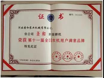 公司產品主要以旋耕機、秸稈還田機、深松機、液壓翻轉犁、驅動耙、水田打漿機、中耕機、開溝機、挖坑機、挖掘收獲機等10大板塊為主。其中以旋耕機和秸稈還田機尤為突出。公司產品以可靠、作業效率高、消耗動力小、外形美觀為主要特點,現有“圣和”商標已被評為“河北商標”,2013-2014年參與實施《農機深松豐產技術推廣項目》被河北省政府和河北省科學技術廳分別授予“農業技術推廣項目獎”和”河北省科學技術成果證書”。現為“旋耕機國家標準起草單位”、“深松旋耕機、雙軸滅茬旋耕機安全標志及防護裝置示范單位”,2019年圣和農機再次喜獲“金口碑獎2018中國用戶喜愛的農機品牌”。