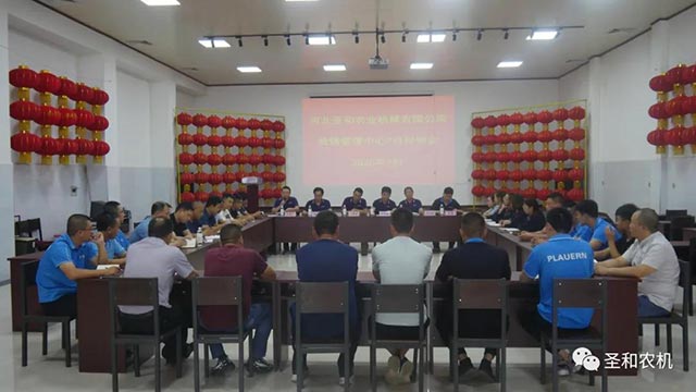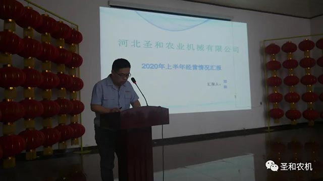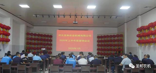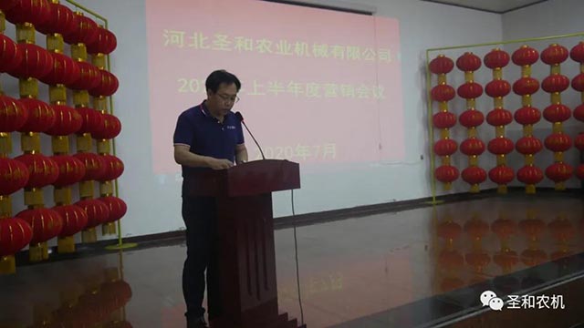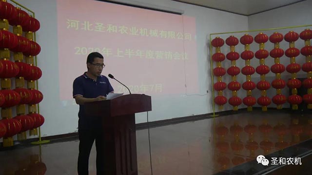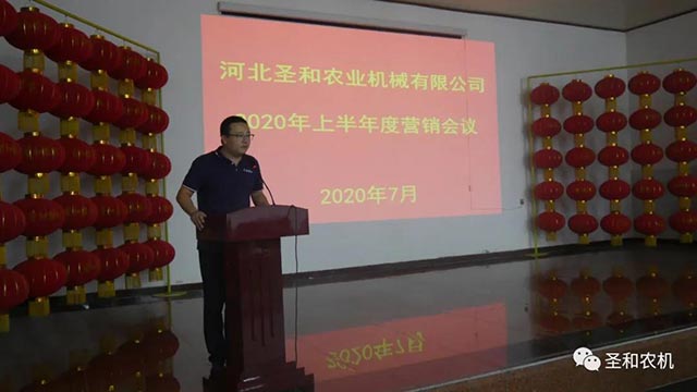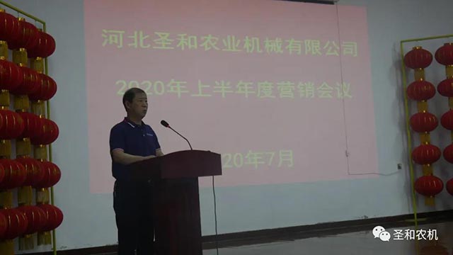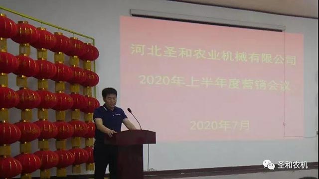 7月13日上午,河北圣和農業機械有限公司隆重召開2020年上半年營銷會議。本次會議由營銷數據通報、市場經驗分享、生產促銷措施、營銷工作重點、公司領導講話等五部分組成。