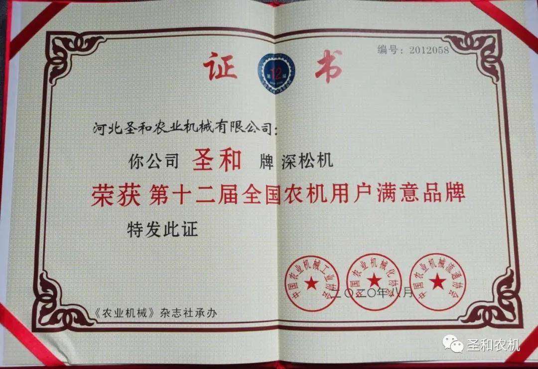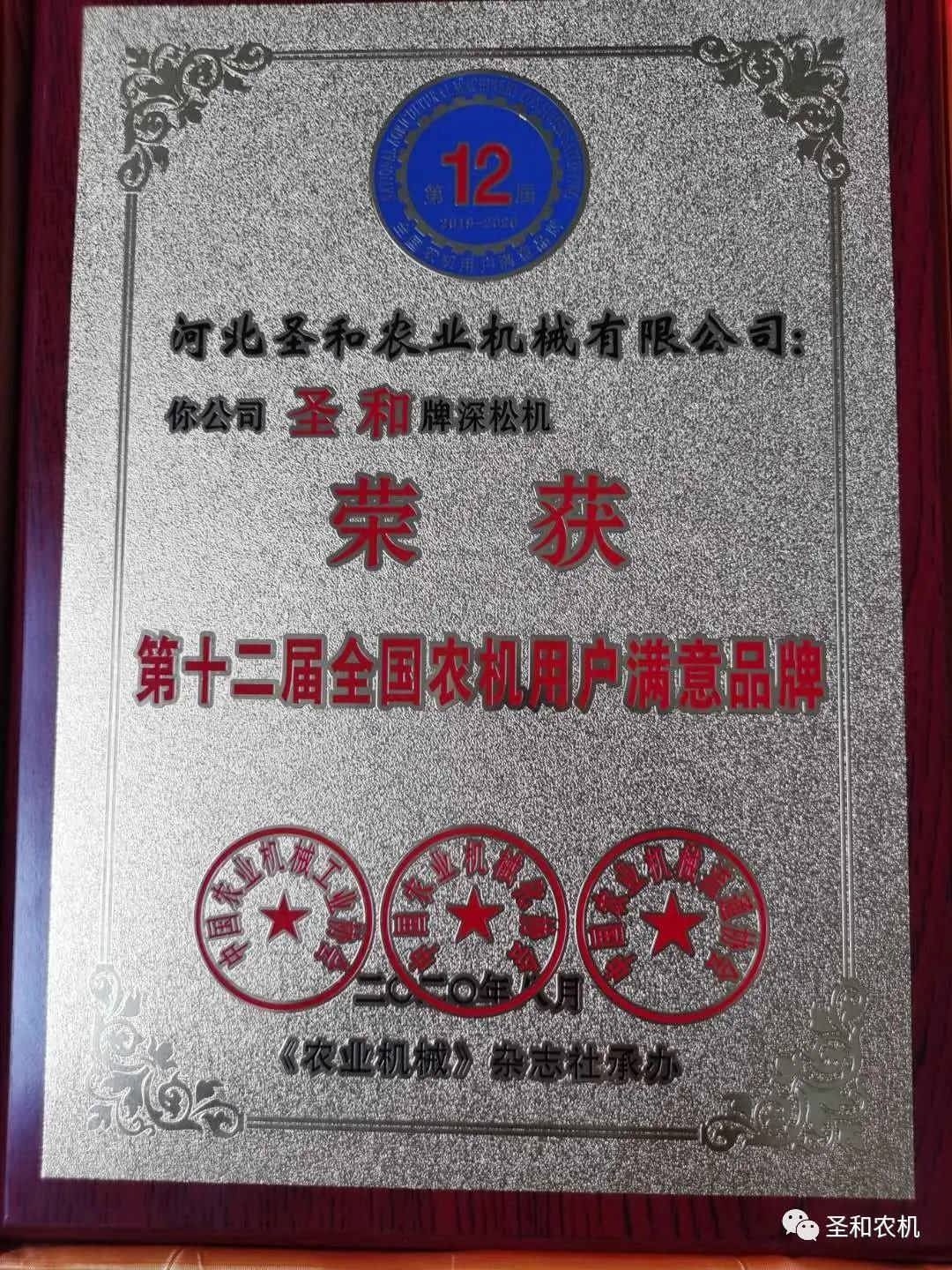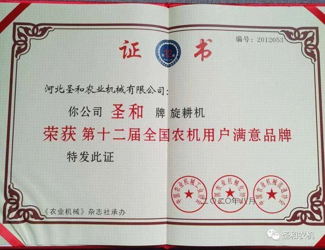 全國農機用戶滿意品牌——圣和再獲大獎!
