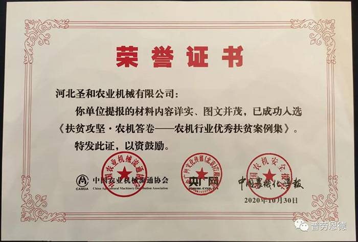 八、“圣和”品牌榮獲最具影響力品牌獎——暨助力脫貧攻堅,圣和公司入選《農機行業優秀扶貧案例集》!