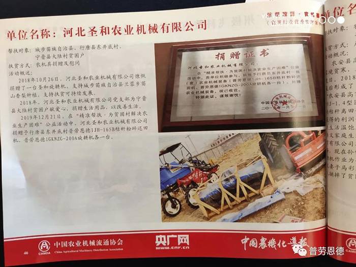 《農機行業優秀扶貧案例集》入選案例榮譽證書頒發儀式同期舉辦!河北圣和是唯一入選的河北生產企業!