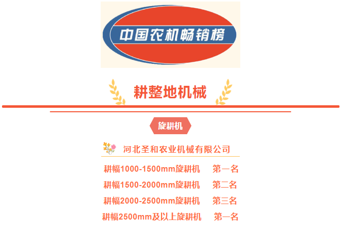 2021年中國農(nóng)機(jī)暢銷榜發(fā)布——圣和旋耕機(jī)榮登榜位