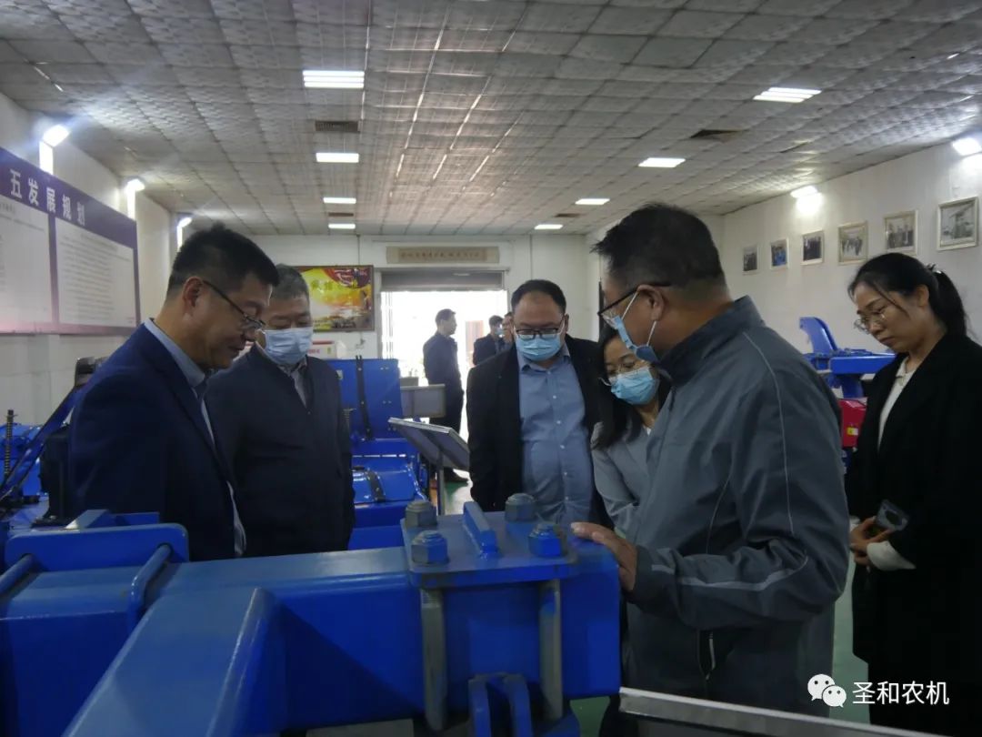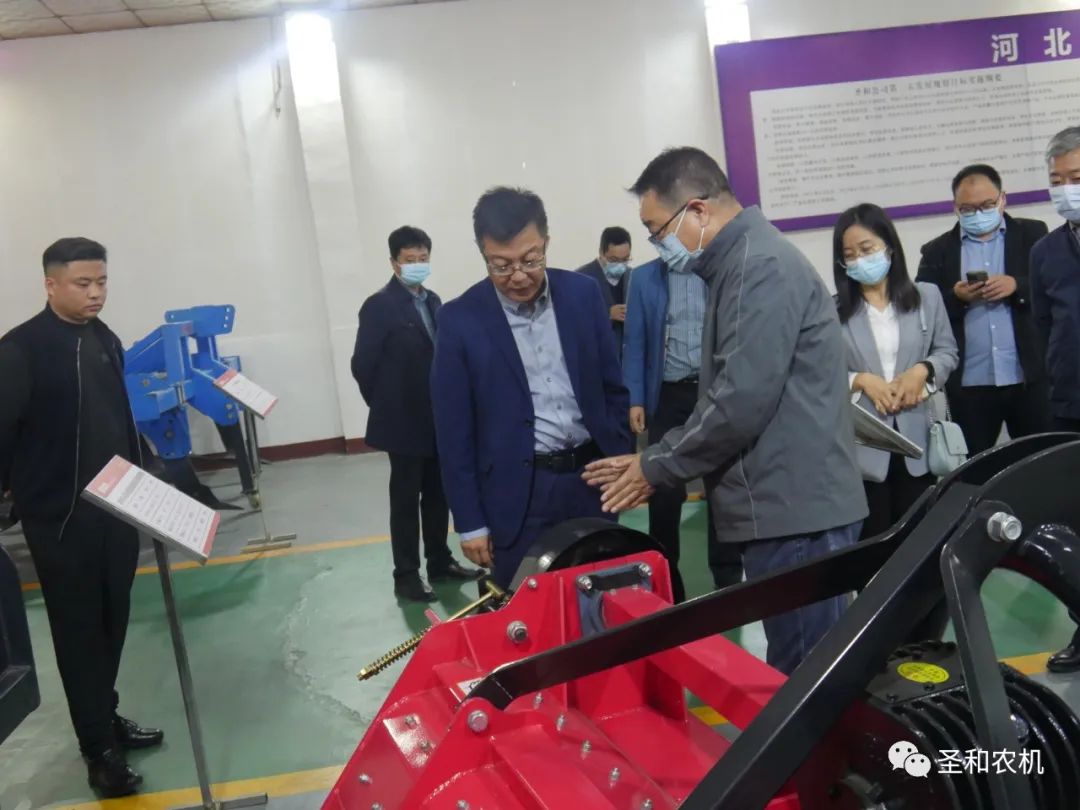 2022年10月10日,北京亦莊工業研究院劉寅院長一行到訪河北圣和農業機械有限公司調研考察,河北省邢臺市寧晉縣商務局黨組書記、局長王軍輝等領導陪同考察。
