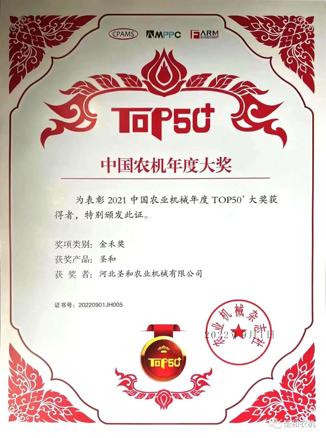 ●圣和品牌榮獲2020年中國農(nóng)業(yè)機(jī)械年度TOP50+最具影響力自主品牌金禾獎。第二個五年規(guī)劃正在實施中,隨著中國市場的不斷優(yōu)化,圣和農(nóng)機(jī)多年潛心鉆研而成的優(yōu)勢逐漸顯現(xiàn)。由于良好的產(chǎn)品質(zhì)量和營銷服務(wù),公司的產(chǎn)品贏得全國各地用戶的普遍認(rèn)可,有多款產(chǎn)品的銷售量排名在全國的前列。