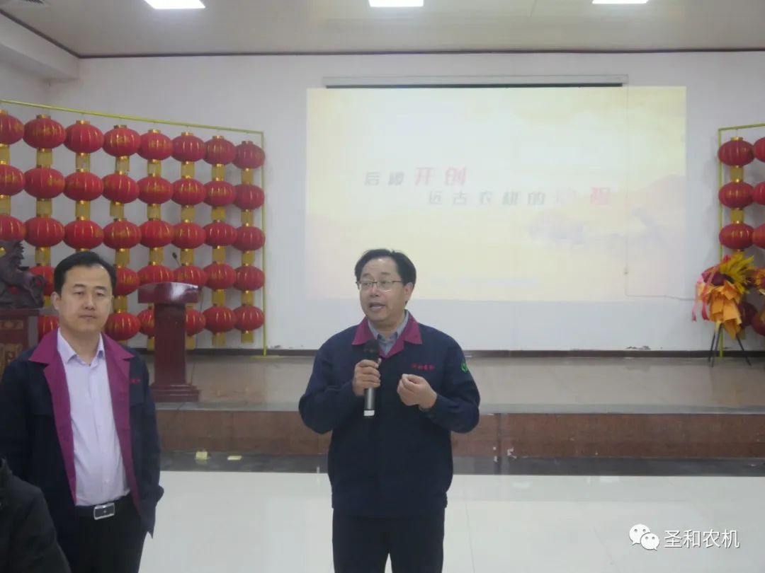 參觀結束后,營銷管理中心總經理郭廣彥發表致詞,對大家的到來表示歡迎,圣和的發展離不開廣大客戶的支持,圣和將為大家生產優質農機,做好品牌,與大家合作共贏。