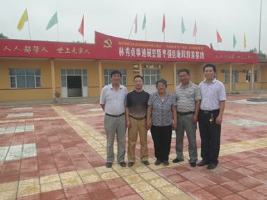 董事長(左一)與林媽媽(左三)和幾位朋友在事跡展廳前合影留念 董事長與林媽媽在她的事跡展廳參觀學習并合影留念
